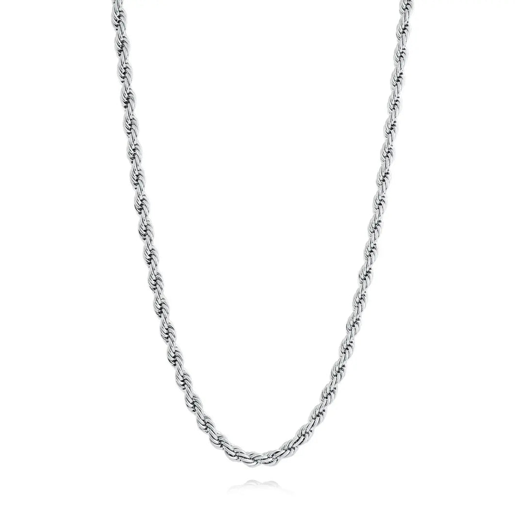 Stainless steel 3 mm rope chain measuring 24 inches with a pelican clasp.