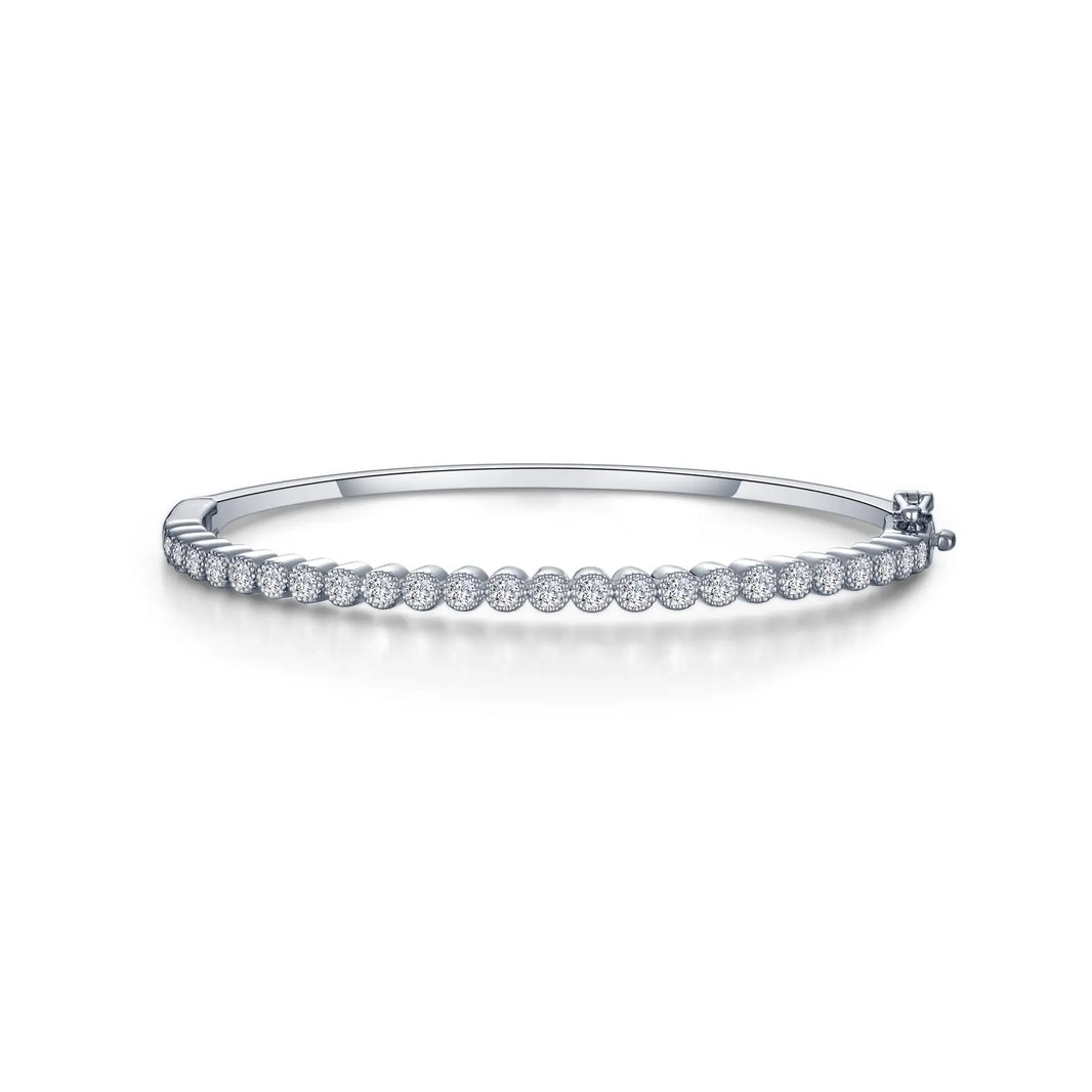 Platinum plated milgrain edged bangle with cubic zirconias bracelet measuring 7 inches in length.