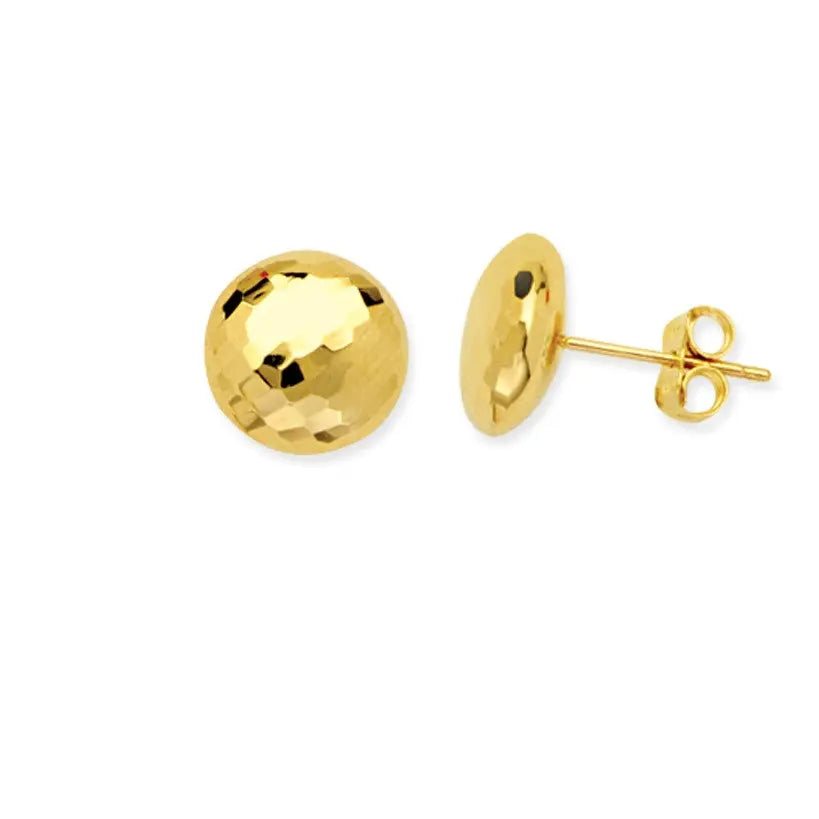14 karat yellow gold mirror finish button earrings with post and friction back closure.