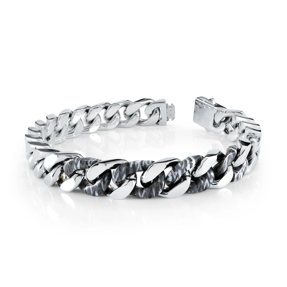 Stainless steel black matte acetate curb link bracelet measuring 8 inches in length