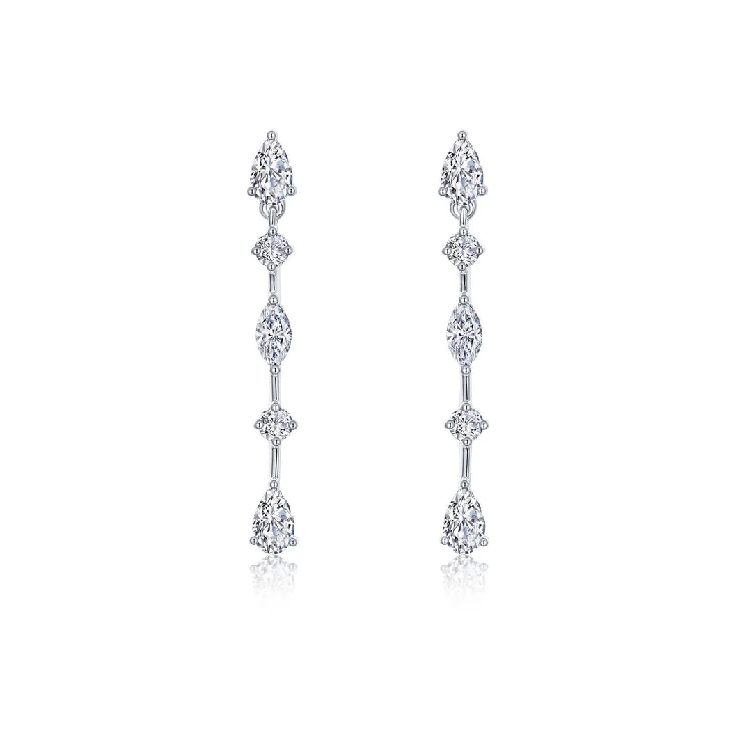 These radiant linear drop earrings are set with lafonn's signature Lassaire simulated diamonds, drop earrings have a post and friction back closure. They are sterling silver and rhodium plated for a bright shine.