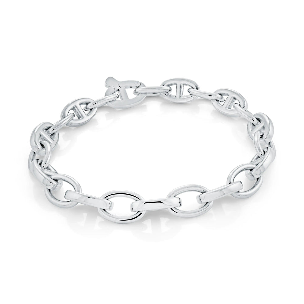 Stainless steel 9 mm mariner link bracelet measuring 8.5 inches in length