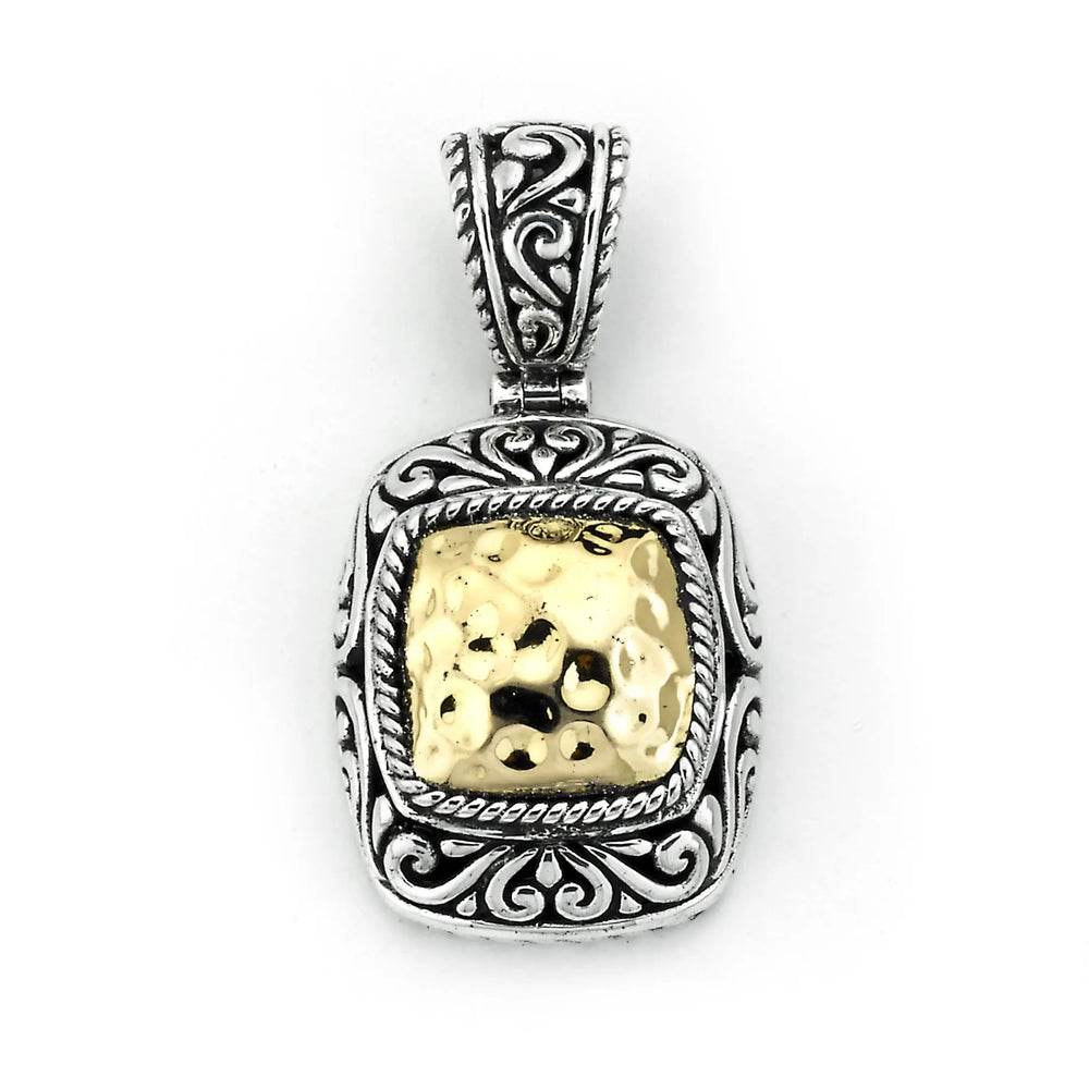 Sterling silver & 18 karat yellow gold hammered square shape center, Balinese design Maybell pendant