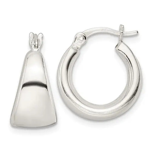 High polished sterling silver tapered round hoop earrings with friction post closure.