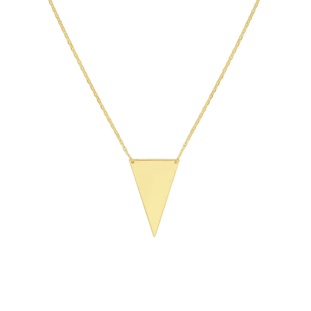 14k yellow gold plated spear tip necklace on an adjustable cable link chain.